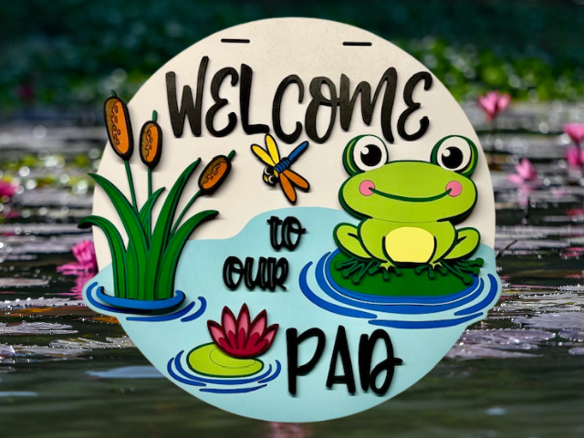 • Handmade with care, our 15″ round “Welcome to Our Pad Frog Sign” is crafted from 1/4″ premium MDF wood for a sturdy, smooth backing